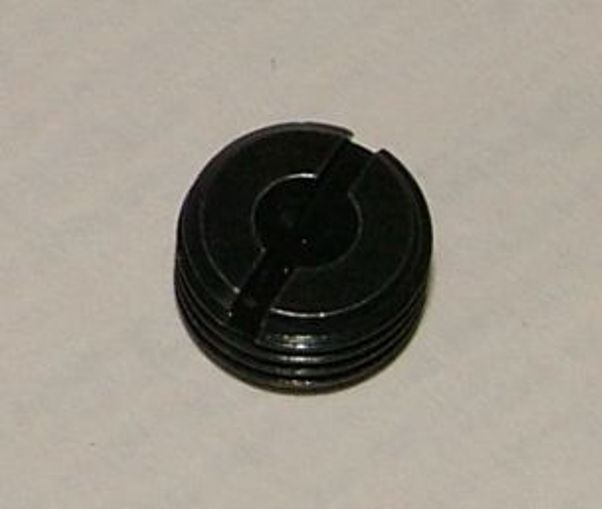 The new pad retaining pin plug is shown below. It is a mild steel 10mm diameter grub screw with a slotted head. Problem is, I can't shift it. Copper grease was applied to the plug when I last replaced the brake pads. I have tried locally heating the caliper in an effort to release the screw, successive efforts have widened the slot in the head so I can no longer get any purchase with succesively larger flat bladed drivers.