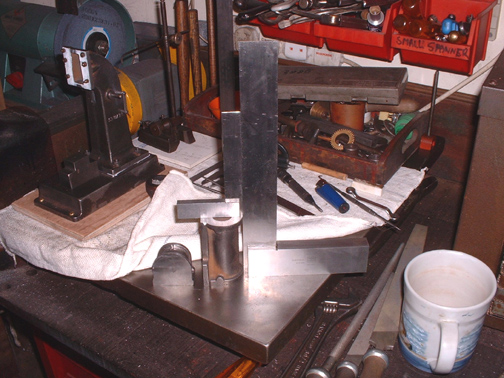 Lots done today..... all the drilling, tapping and fitting done on the standard and I've taken the first two facing cuts on the mouthpiece that supports the cylinder. I know I've said this before but it's worth repeating. If you want to really understand a piece of machinery, make one. All the jobs I have done today had to be done on the full size hammer. The only difference is the size.....