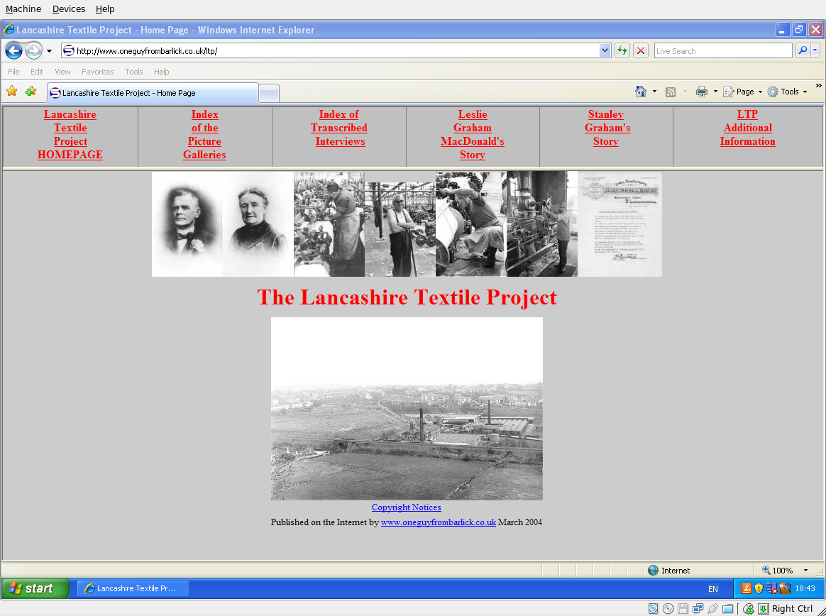 Published here for the first time on the Internet, is the unique insight into the steam driven Weaving Industry here in East Lancashire. Over 1,300,000 Words,500 photographs and 190 transcribed tape recordings of interviews with individuals who worked in the industry.
