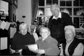 We used the occasion to take the opportunity to ask local people to help identify faces on some old photographs we have recently been given. This photograph shows visitors doing a fine job remembering many names.
