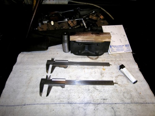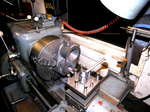 I was late starting yesterday due to my daughter's welcome visit. So it was after lunch when the last HP bore was set up and started. It was finished to 1 1/2" during the afternoon, a gnat's hair smaller than the other one but this is no problem. One thing I forgot to mention is that after the last cut has broken through it's a good thing to put another thou on the cut and reverse the feed, this gives a better finish and takes out the metal left because of spring in the tool. Good practice if you have the time. The old model makers spent hours lapping bores to a mirror finish, I don't bother, a good clean cut soon polishes up when you run the engine, in fact some authorities say that this self-induced finish is better than lapped. The old engine makers certainly didn't do it.