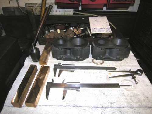 State of play at 16:00. Both blocks bored and accurate. Stock for bearings ready for shaving. Bearing caps getting closer. Machines cleaned up and ready for today.