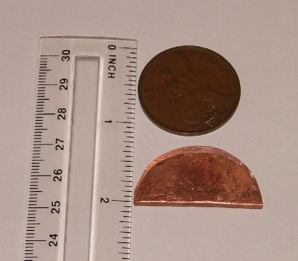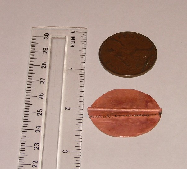 Right, here we go, bashed another Penny up to have a go at Spitfire MkII. Heated it up and plunged in cold water before the bashing. It's quite a bit bigger than my first effort.