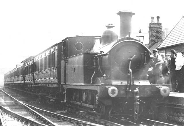 No.1347 pulling into Barnoldswick c1900-1. Notice the absence of the canopy behind the head of the man in straw hat (William Eccleston, known as Bill o’ Jed’s). The left hand building has an un-slated roof. Not apparent in this print, the wooden goods office has yet to be constructed. Mention of Kelbrook, a village only ¼ of a mile away from the junction, and the even closer Sough (pronounced ‘Suff’) with its mill again prompts the question as to why no railway facilities were ever provided and during the Great War a munitions factory was apparently located in the fork between the Colne line and the branch. I was given a signal box diagram of the sidings many years ago, but recent research by, local railway author Donald Binns failed to come up with any official information whatsoever.