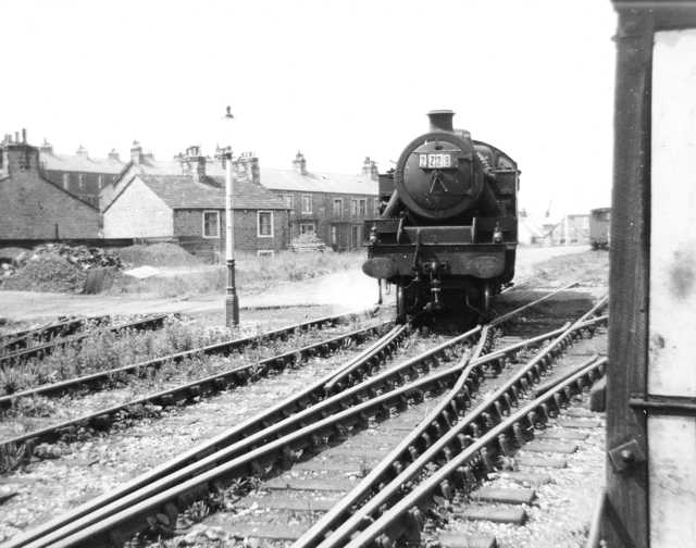 The experience of the wider railway scene quickly made me realise that the branch was unusual in several respects: The single track with its controlling train staff and key which a patient railwayman explained; the absence of a signal box, necessitating double heading one train and then locking in one locomotive in the coal yard; and the cross-bar signal which was not interlocked with the level crossing gates. My memory is that the signal was disused when I first became aware of it. However, a porter by the name of Ezra Fish, who became a railwayman in middle age, started using it in the later 1950s. By this time I had acquired a box camera and carefully recorded the shunting process. The goods yard and shunting neck were separated from the coal-yard by the busy Wellhouse Rd. level crossing at the platform end. Shunting entailed the frequent opening and closing of these gates and, if Ezra was on duty, the operation of the signal. The gates would be opened for the railway and the signal turned to clear. The shunting move would then be made, and the gates immediately dragged back to allow the build-up of traffic to clear with the signal still turned clear for the railway. Finally, the signal would be returned to danger! All of this I described in an article published in the February 1975 Railway World. Imagine my annoyance on pub1ication when the only photograph not used was the very one showing the signal clear and the gates shut! Moreover, they took it upon themselves to describe the line as an L&Y branch!