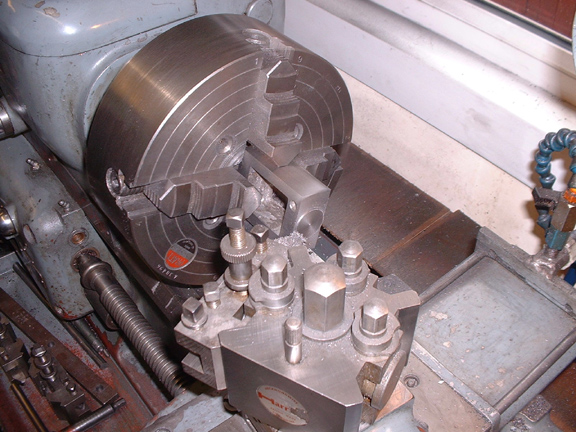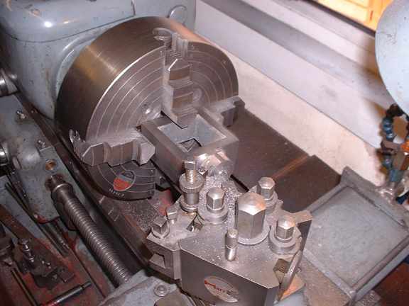 I milled the edge of the big valve chamber lid to size and then popped it into the lathe to face it. No bother about a centre of course, I just want a good tool finish and flat.