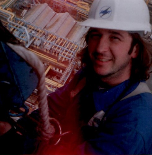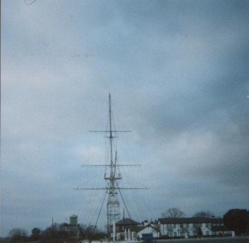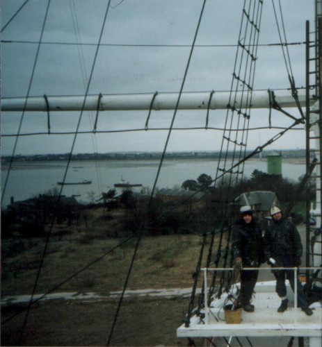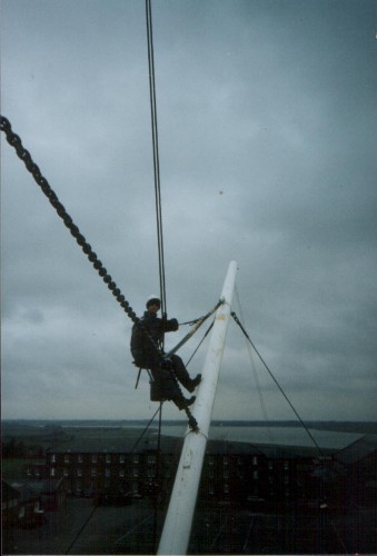 199o ishShotley Mast. 200ft of ships rigging in a carpark. Police training college. John Gell, John Pope, Tommy Keogh. Santon/Furse, the transition period. All of the hemp rigging had been replaced by steel wire. The job was to repaint the entire structure, wires and all.