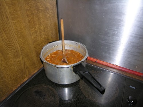 Anyone remember haybox cooking? I ask because I often do the same thing. Last thing at night I bring the soup or stew to the boil and then pile all the spare towels and dish cloths on the pan and it keeps hot enough to cook slowly for hours. Soup is good, plenty of meat in it!