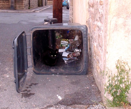Strong damaging winds and low temperatures yesterday. Branches blown out of trees on the old sidings and wheelie bins blown over. This cat had the right idea, not a bad place to be.......