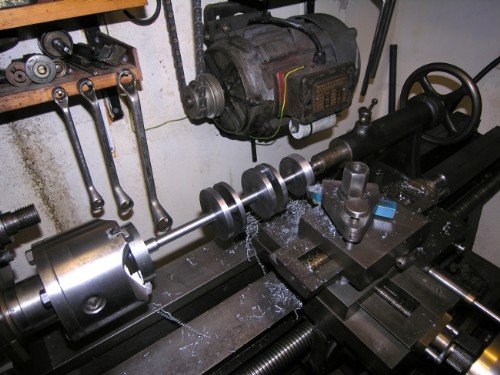 LP flange reduced to size and all the faces of the crank discs cleaned up to make it look as though someone cared. Crank jornals polished with emery strip.