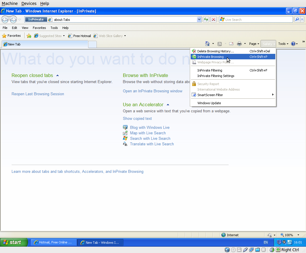 Porn mode in Internet Explorer 8, The same 'Shift Cntrl P' works in Later versions of Firefox as well :