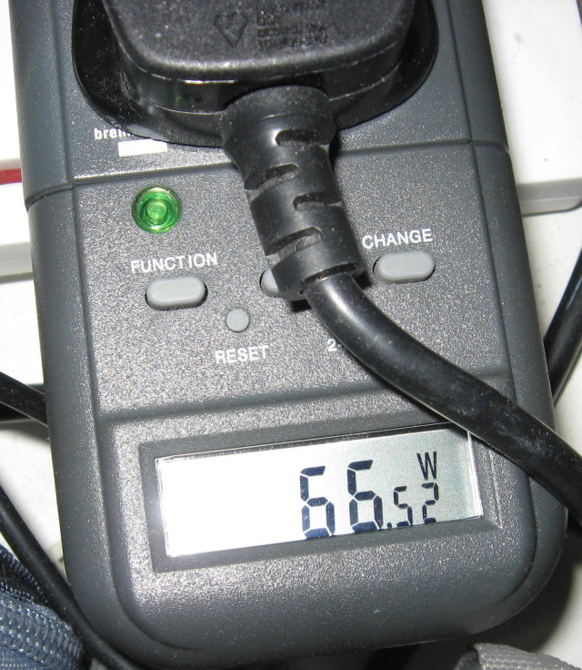 My desktop PC is connected to the plug and its consuming 66.52 Watts which is all very well, you use a computer, you have to feed it with electric.