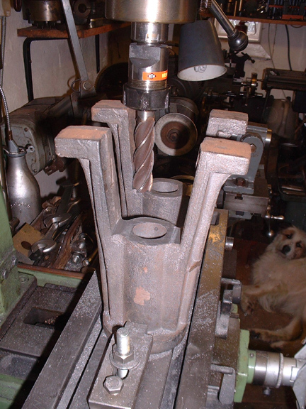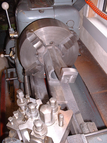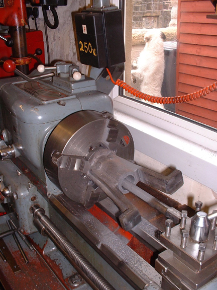 The bore is finished and I am now turning the feet while I am sure the standard is perfectly central. This means that I have something to work off when mounting the standard which has to be perfectly square to the crankshaft.