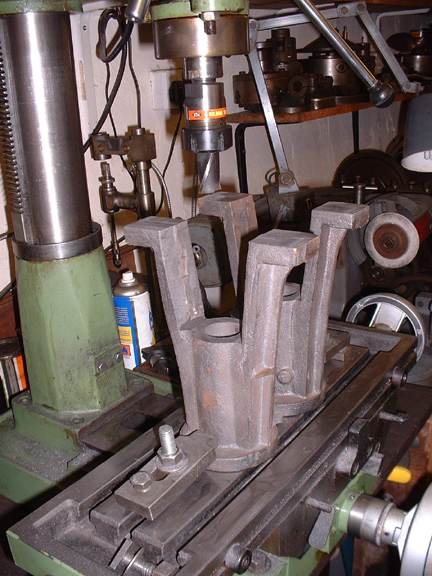 I finished facing the last two sole plates this morning and the afternoon has been spent marking the castings up for the location and size of the pads for the pillars and the bearing caps. I'd forgotten that all those measurements had to be adjusted from the Stuart drawings as our castings are different. I've drilled all the holes for the mounting bolts and also two holes on each casting to take the holding down bolts for milling the pads to size. These are covered up by the pillar feet when assembled so no problem there. Biggest asset has been the Clarkson tool and cutter grinder.... I can remember asking the bloke who persuaded me to part with £400 for it what the hell I needed a T&C grinder for. Am I glad I got it, it makes all the difference when you can whip a cutter out and touch it up. Dead easy of course if you are using the same cutter for a lot of cuts as the settings are already there. I always knew when I was buying tackle and machinery that it would all come in but I think that over the years a lot of people thought I was going over the top. Not so, you can't have too much good tackle, makes the job so much easier.