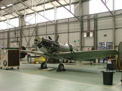 There is a cordoned off walkway down one side of the hangar. On entering, I could not believe my eyes. All the chick's bar 1 were at home! Dakota at one end of the Hangar, Lancaster at the other about 100 yards away, lining each side Spitfires and Hurricanes. 4 Spitfires and 2 Hurricanes to be exact with a further Spitfire as work in progress. A Chipmunk trainer completes the lineup in the bottom corner of the hangar. When our tour got to the bottom of the hangar our guide let me and a couple more guys over the barrier for a closer look. How good can this get!