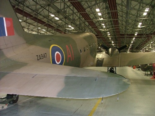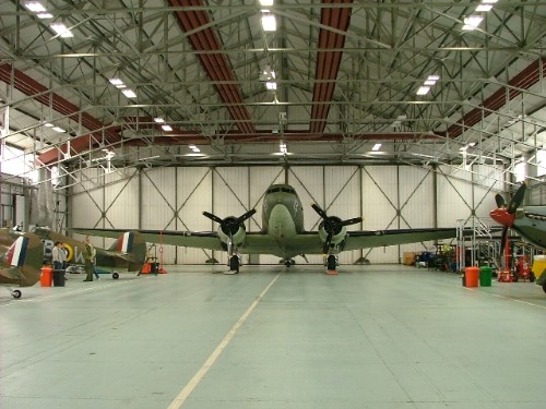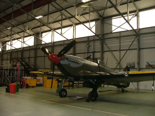 The visitor Centre has a number of exhibits depicting the aircraft of the BBMF flight, the story of the Battle of Britain and one or two hands on exhibits - you can have a go with a radio receiver and they have a flight simulator running on a PC that you can fly a bombing run on. There is a shop section selling memorabila. It was interesting to note that you can get Haynes manuals for the Spitfire, Hurricane, Lancaster and Dakota. I think that some of the technical guys that work on the BBMF flight aircraft have contributed to these. You can only go round the hangar with a guide, the place was quite busy so I qued for a short while and bought my ticket for the Green tour which would be at about 3.15pm. The tour costs £5.00 and lasts approximately 1 hour. Timings are not exact as the tours vary I suppose depending on the number of questions the guides have to answer. They take about 10 or 12 people on each tour and they start about 20 minutes apart. MIne was called at 3.20pm and we duly assembled and were escorted across to the hangar.