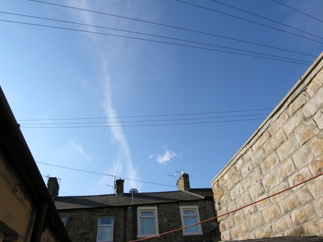 This just caught my eye, just above the right hand chimney stack at 11 o'clock. One lonely cloud crossing an otherwise clear sky from East to West. It was much bigger when I first noticed it and shortly after I made the pic it vanished. Funny things clouds, they don't often change as fast as this one did. I know nothing about what causes an odd cloud like this or what caused it to dissolve so quickly. Fascinating.