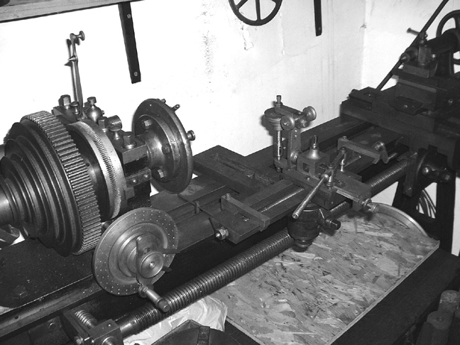 I've sorted through all the treasures now and found everything that I have that obviously goes with the Birch lathe. Johnny and Newton used it a lot on gear-cutting by using milling cutters driven by the overhead drive. Without the drive in use it is a very useful plain turning lathe for small stuff, almost down to watchmaking scale. I am going to fit it up with a motor in the front room and, horror of horrors, will use it for very small turning which makes hardly any mess. I shall make a tray for it out of 3/4 ply so I can contain the swarf and mount the electric motor sensibly. I doubt if I shall ever need a four-jaw chuck but I'm going to get one anyway so that the lathe is fully equipped.