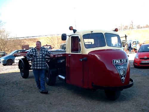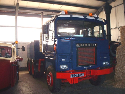 I had a surprise set off today. John rang me and said he was taking a wagon to Ellenroad because they were having a steaming day. He came all the way over to Barlick and brought me all the way back. He's a good lad and says that it's a pleasure. That's the way to tell if you have a friend. He asked me which wagon we should take and here's what we decided on. Its a Scammel Scarab mechanical horse, so called because the railways used them to replace horse haulage. The trailer can carry six tons and they are automatic coupling, you don't have to get out of the cab to take the trailer off or pick one up. Incredibly noisy like all the old wagons were but great fun! I saw all my old friends who are volunteers and a couple of blokes I haven't seen for years, Hughie Smith and Joe Sampson the old Milnrow blacksmith. Wonderful! Everyone was glad to see me and it was really nice, lots of visitors there as well. A good day out.
