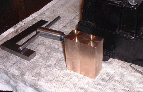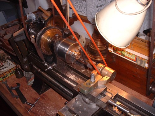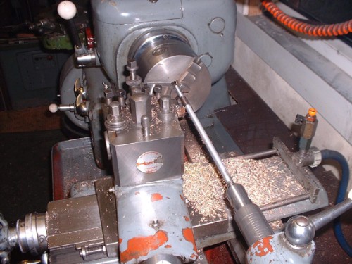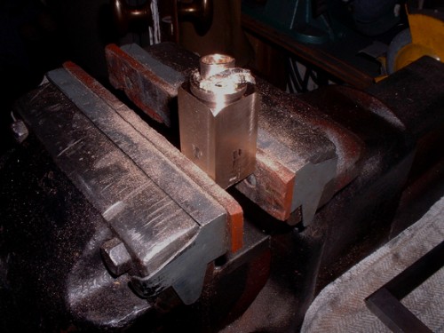 By dinnertime we had the flanges made, the bore drilled and a flat cut on the bottom of the receiver to take the drain valve. I broke away from the receiver to make a drain valve ready to go on and tap the hole in the receiver.