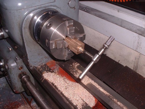 It took most of the morning to chop two blocks out square and to size. Then a bit of precision turning, drill the passage out, turn to size and thread the end.