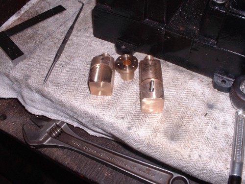 An hour later and the first manifold block is fitted on the LP and I went digging in the treasure chest for another lump of bronze. It was a good thing actually because if the first one had been a success I would have had to mount the block on the HP with a nipple to get the length. I decided that the new piece would be long enough to mount it direct so it matches the one on the LP.