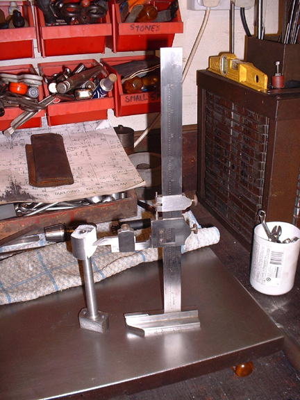 I decided that It was a toss up which end I started on so decided to do the fork end that fits the cross head. First job was to whiten up, go and check all my measurements (again!) and then mark the centre lines as accurately as my old shaking hands could get them. Some years ago I helped a woman who's husband had died by giving her some advice and prices for her husband's workshop. She got some immediate offers from the advert and ended up about £3,000 better off so she asked me if she could pay me or give me something. So I ended up with this height gauge and a set of slip gauges. So, I gave it an outing today.....