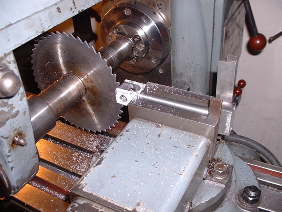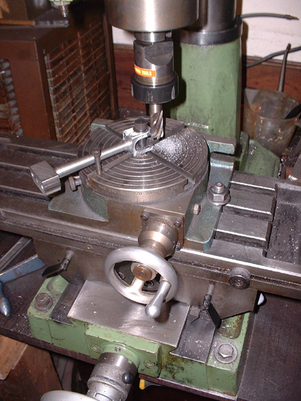 Here's where we are at close of play. I've drilled the 3/8" holes for the crank pins, bored 5/8" for the bottom of the fork and milled out a marker slot as this is the most accurate way of marking it. I can't mill it all out safely because when I get to the bottom of the cut the vice will exert too much pressure on the fork and start to collapse it. Now they are marked it will be fairly simple to saw down the mark and take the meat out in one lump. Just one confession, you have to take your courage in both hands when you get this far and start to poke 5/8" drills into it! Especially when it starts to grab as one wing of the drill hits the crank pin hole. Exciting stuff but no problems as it turned out.
