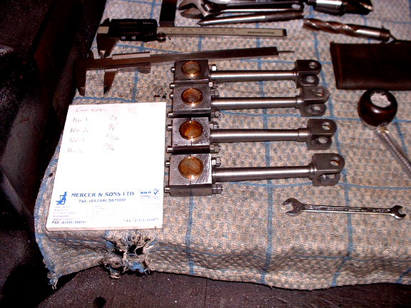 Close of play at 16:30. All the ends bushed to a good fit and oil gutters cut in the outside of the shells. I've not done anything about splitting the bushes, flaring the ends or cleaning the bore, all that can wait until I get round to fitting them. Next job is to make the crank pins and securing collars...... How much work can there be in con'rods. I'd forgotten how long they took....