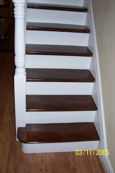 Couldn't get my staircase in the shed so i brought my shed to the stairs,this is my attempt to get them to how they might have looked in the 1920s when my house was built,the knewel post is wrong because it would have been a plain square one,lots of scrapeing and sanding,removed hundreds of staples from previous carpets,the staining and varnishing was tricky because we still had to use the stairs so i did every other one,this took me about 5 weeks but i think it was worth it,everyone comments on them when they visit.