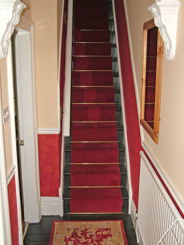 Thank you all for the comments,the stairs aren't steep just a bad angle pic. there is a small landing where the stairs turn aswell,"nightmare",i nearly forgot about the tacks that were hammered in that far i had to dig them out and fill the holes,the smell when sanding was something else,the good lady loves them ,no hoover required just a damp cloth..