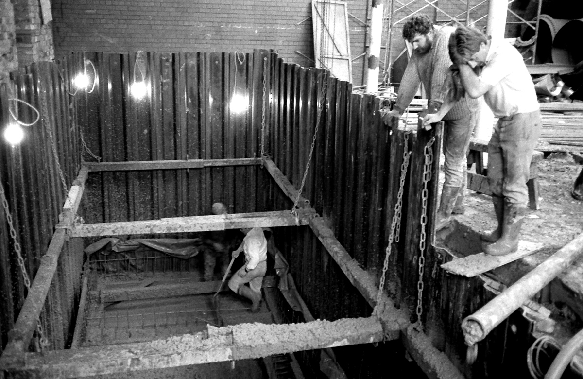 Here's a good example of a master/servant relationship that wasn't based on exploitation. The big bloke with the beard is John Kelly of MGF trenching systems and the other man is Jack his Pit Boss. John was the gaffer but in terms of their relationship they were nearer to partners than anything else because Jack was so skilled and essential to the job. John didn't maintain his status as a boss by wage differentials, he did it by mutual respect. No coincidence that they were doing a difficult, dirty job and did it well. They had put a hole 15ft deep into boulder clay and running sand well below the water table. Opposite direction to jacking but just as difficult.