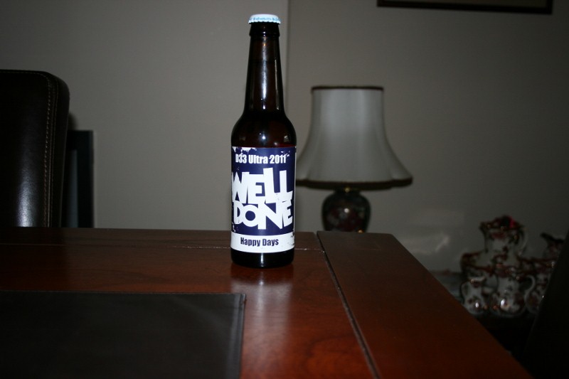 Our son woke on Wednesday and said I think I will do the Deeside Ultra Marathon on Saturday 33 miles. His brother said what training have you done ? I haven't done any was the reply, but I don't quit so I will do it. We waited at Duthie Park and after 4 hrs 51 minutes in he came with a rucksack on his back. What the hell is the rucksack for said his brother "my clothes" when I got here this morning and got changed I just put my stuff in the sack and off I went. Someone texted a friend who runs marathons and told her the story only one word came back in reply RESPECT. So it cost him a tenner to enter and he got this bottle of beer, but he knows now he can run a marathon in 3hrs 40 minutes and then do the next 7 miles in 67 minutes. Splits are rubbish he says but they will get better, like his feet I suppose !!! Well Done Royal you have my Respect