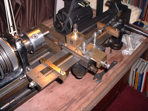 Notice that there is another slot in the toolholder at right angles to the one the frame is mounted in. This means that you can use the rest in any orientation and you can also swing the lot round and work across the face as well in either turning or fly-cutting mode. The ornamemtal slide turning rest is one of the most versatile attachments you can have on a lathe and coupled with the tangential dividing gear makes it into a true ornamental lathe. In modern terms this is an eighty year old 'machining centre'. Well done Johnny! Tomorrow we have cleaning of parts.........