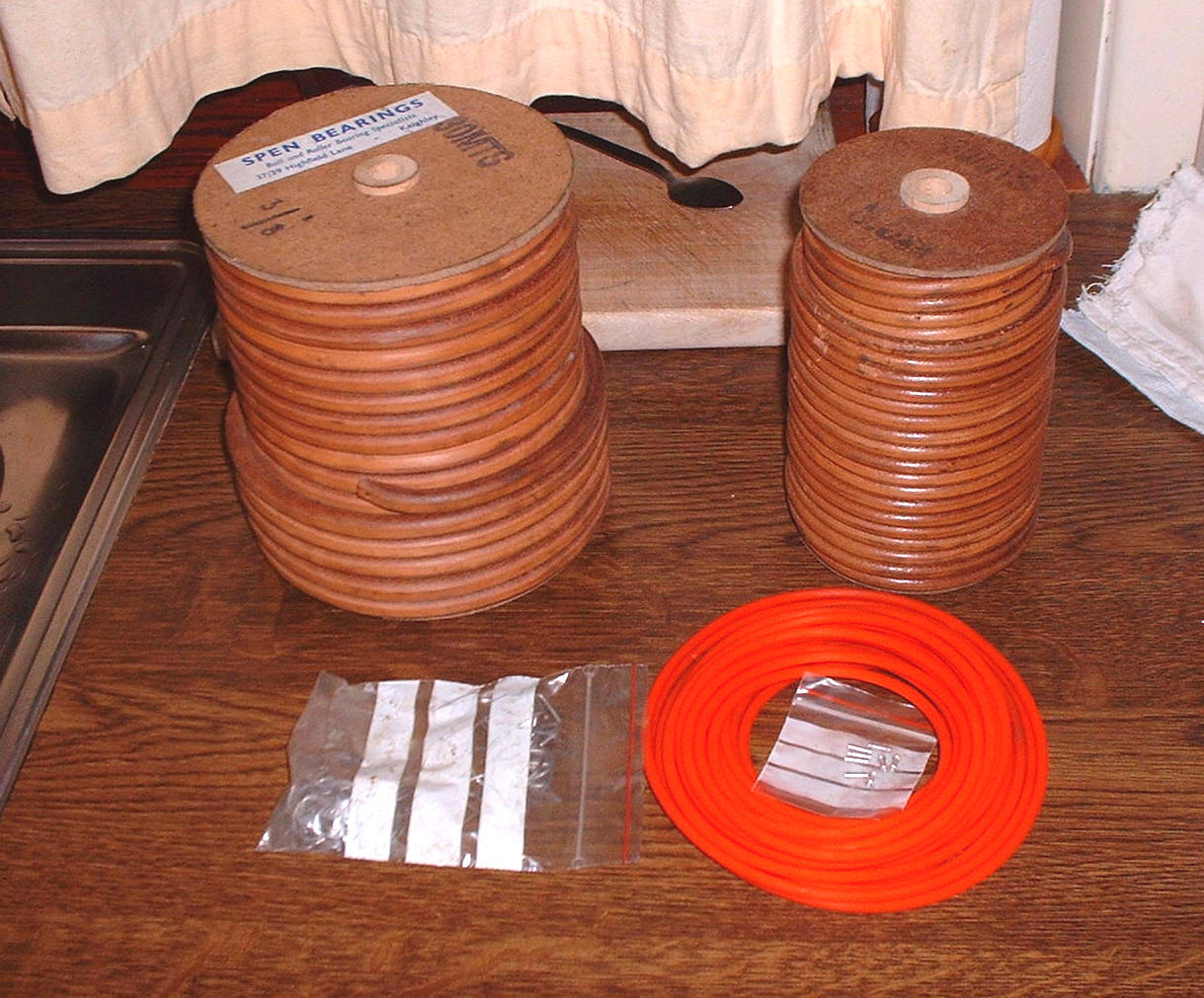 I mucked up the pic..... The two coils are brand new leather belt and really they want dropping in a bucket of neat's foot oil for about 3 months and then leaving to drain for the same amount of time. I think I'll use the modern plastic stuff temporarily but cut a piece of 1/4 leather rope and soak it. When it's nice and supple I'll fit it. Mind you, I wonder what would happen if I git some lard and melted it in a pan and cooked the rope in it for 30 minutes? I think I'll try that, far more exciting and of course in character, the plastic drive wasn't about when the lathe was built.