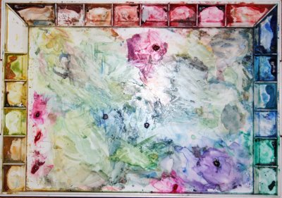 That looks alot like my pallete, i cant take a photo as a need a new card for my camera. Sue your paintings are nice! Is Rosemary Leach a local painter ?