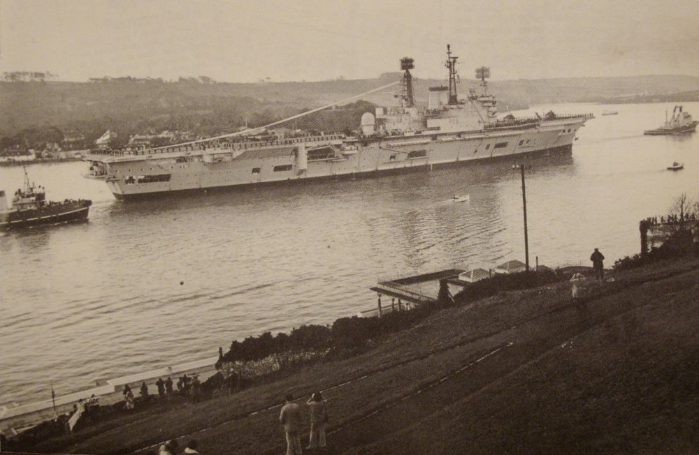 Click for larger image. HMS Ark Royal making her last active appearance in 1978, not to be confused with the later Ark Royal which has just made her last appearance too. Shown in Plymouth Sound and taken away to the breaker's yard in 1980.