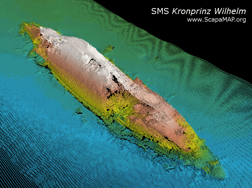 This Multibeam image is of the SMS Kronprinz Wilhelm, Battleship, I have similar images of the remaining wrecks.