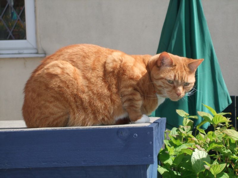Nice photo of a Marmalade cat, looks good amongst the green.