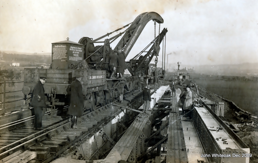Construction of railway bridge on Skipton to Earby line over Heslaker Lane and River Aire.