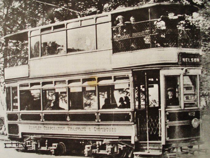 One of the Burnley Tramways & Omnibus Corporation electric trams at Nelson in the 1920s-30s. |