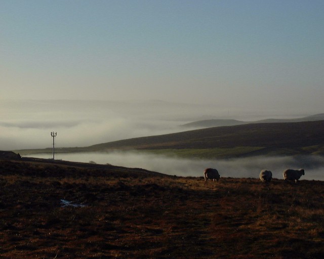 Taken from the top of Weets Hill looking over towards Blacko Tower (Malkin Tower) it shows the early morning fog blanketing the valleys like cotton wool