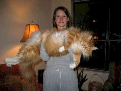 Hi all. I am lucky enough to know this lady.. she is called Laura... she is not British. The cat.. is a 5 year old Maine Coone. If you type 'Maine Coone' into google... you'll see loads. Enjoy xx :o)