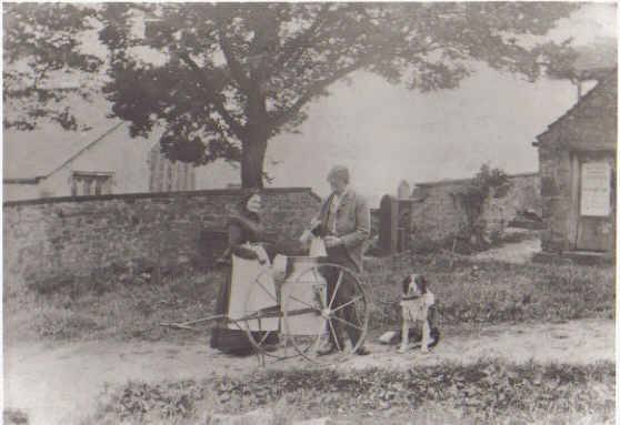 Outside Thornton church, the building on the right now gone. Richard occupied Bell's Farm in the village centre |