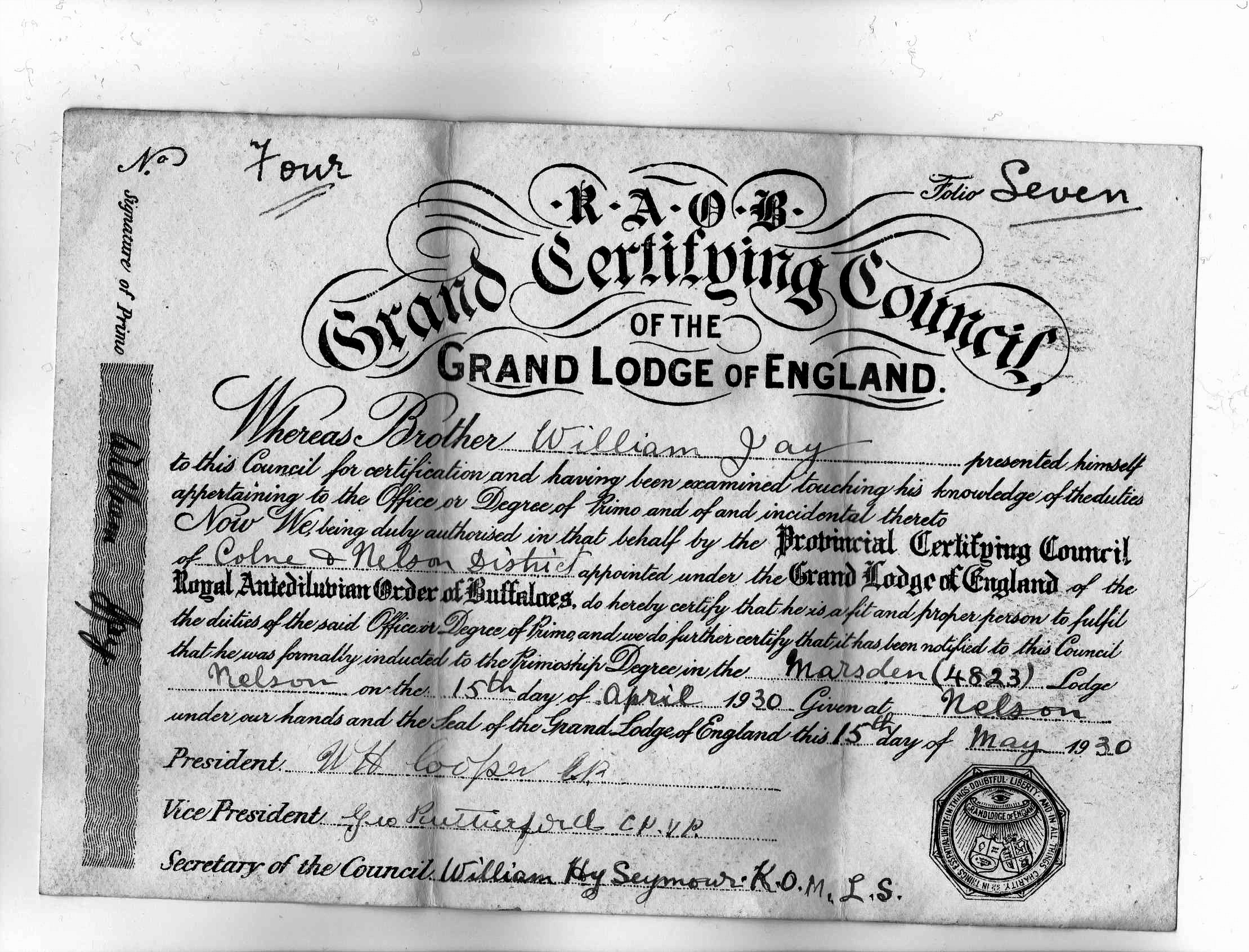 Royal Antediluvian Order of Buffaloes Mr William Jay