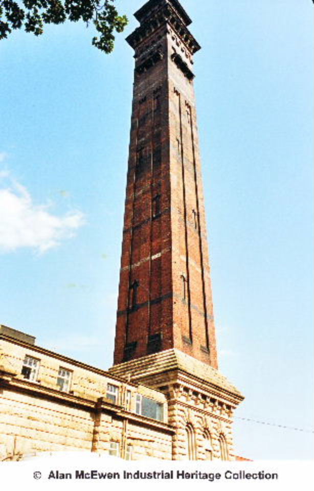 India Mill Chimney, Darwen. This fantastic chimney stands as a proud reminder to those earlier days when King Cotton ruled the land. This stack is undoubtedly an extremely impressive structure towering to over 300 feet. |