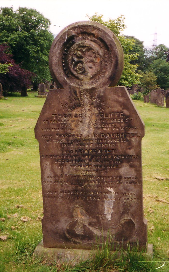 In Burnley cemetery. Apologies for the poor quality, this stone is in a bad way.