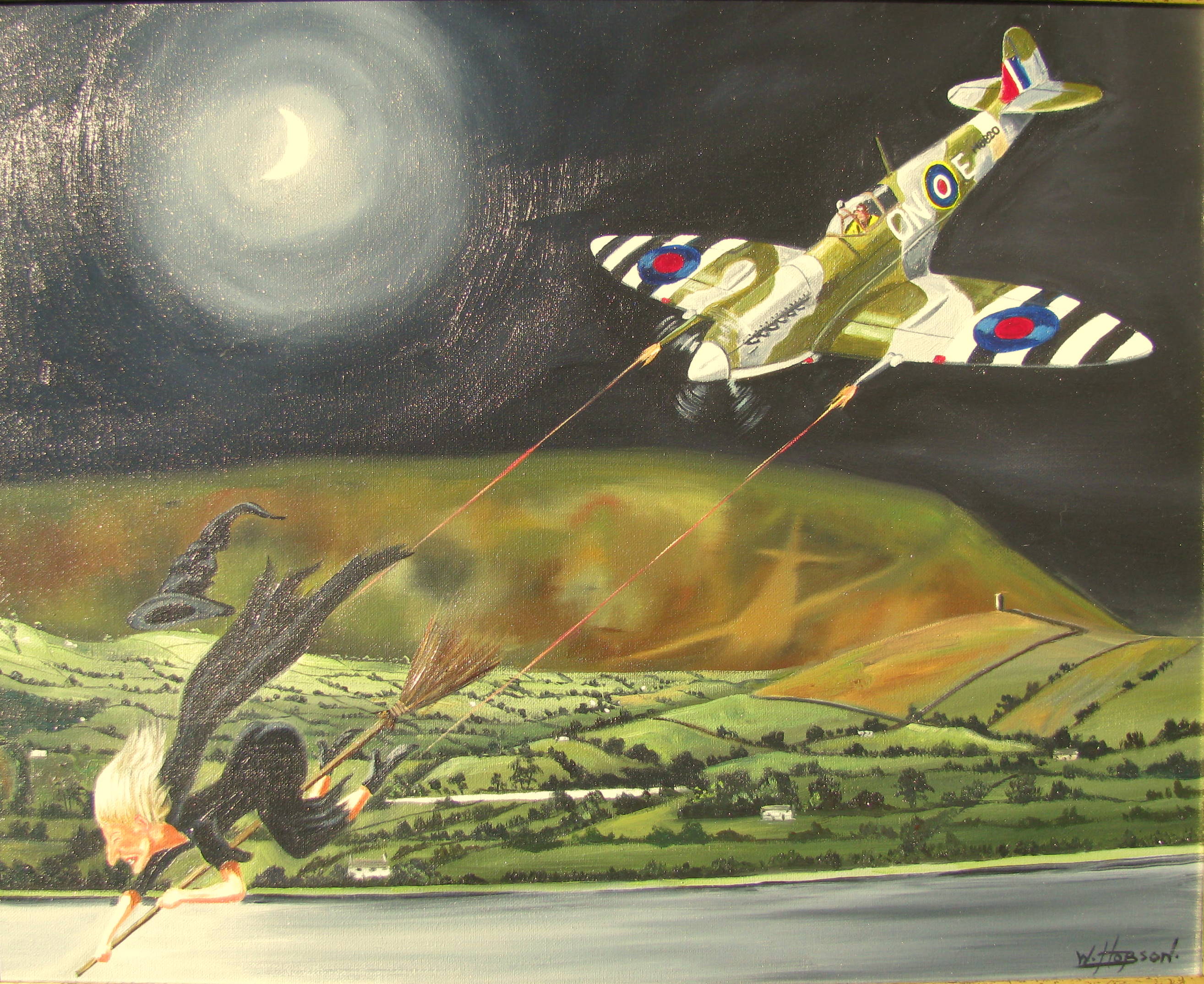 A spitfire on its way home from a sortie during ww2 spots a witch.