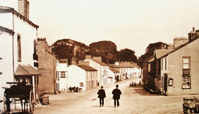 The main street through Gisburn village in the early 1900s. The hotel and coaching inn on the left date from the 17th century, and village shop on the right-hand side. Not much has changed. |