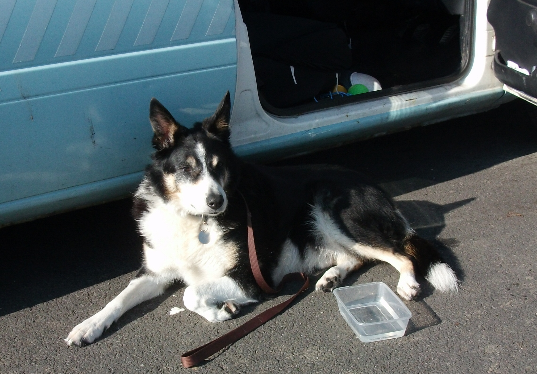 Tues 12/10/10 Scamp chilling out after a walkin Lettcliffe Park before he went to the Vets place at Colne. |